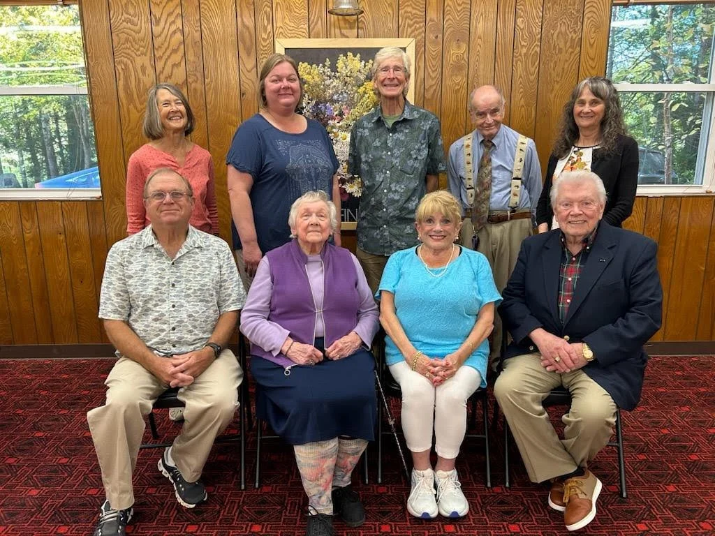 Rear: (L to R) Lorna Sulin (E-mails and Publicity), Julie Primeau (Newsletter), Frank Ruosteoja (Park Manager), Eino Kauppi (Scholarships), Donna McCarthy (Recording Secretary)